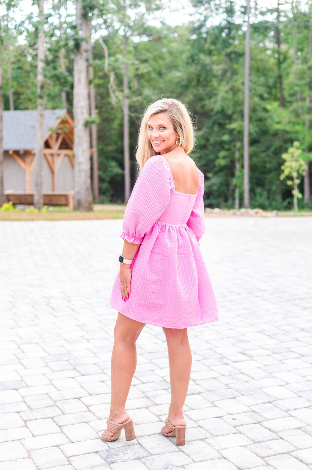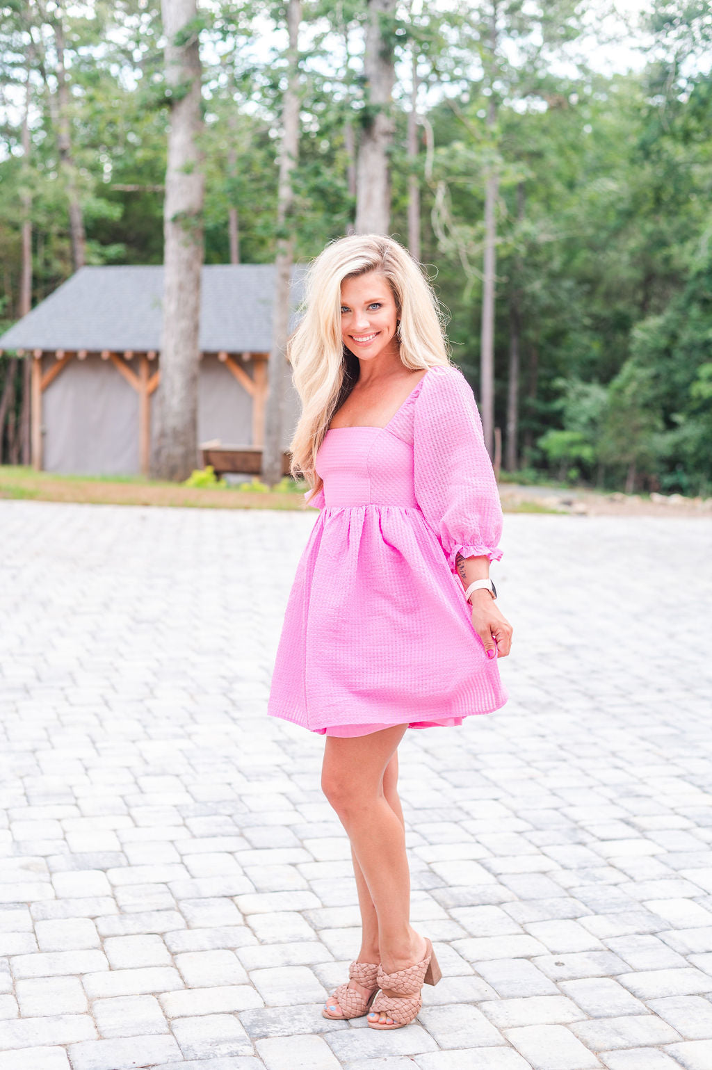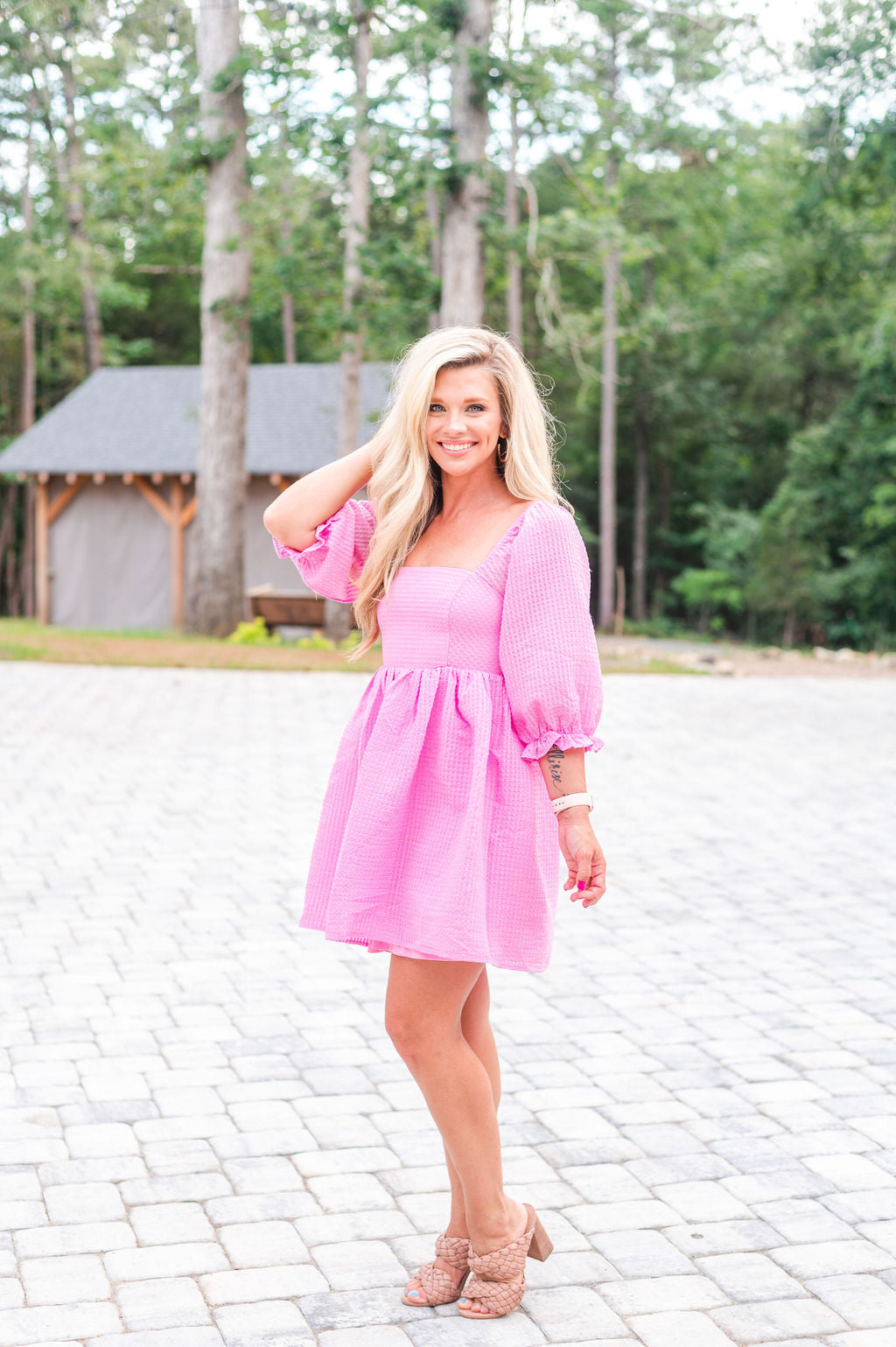 Welcome to Barbie World – where pink dreams come true! This square necked mini dress is the perfect way to show off your style, with 3/4 sleeves for a cool, girly vibe. Now go forth, and sparkle! 💖
