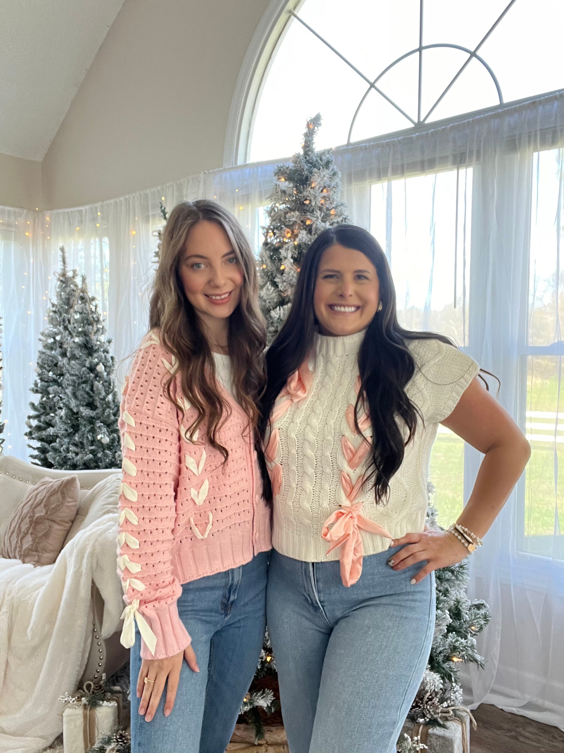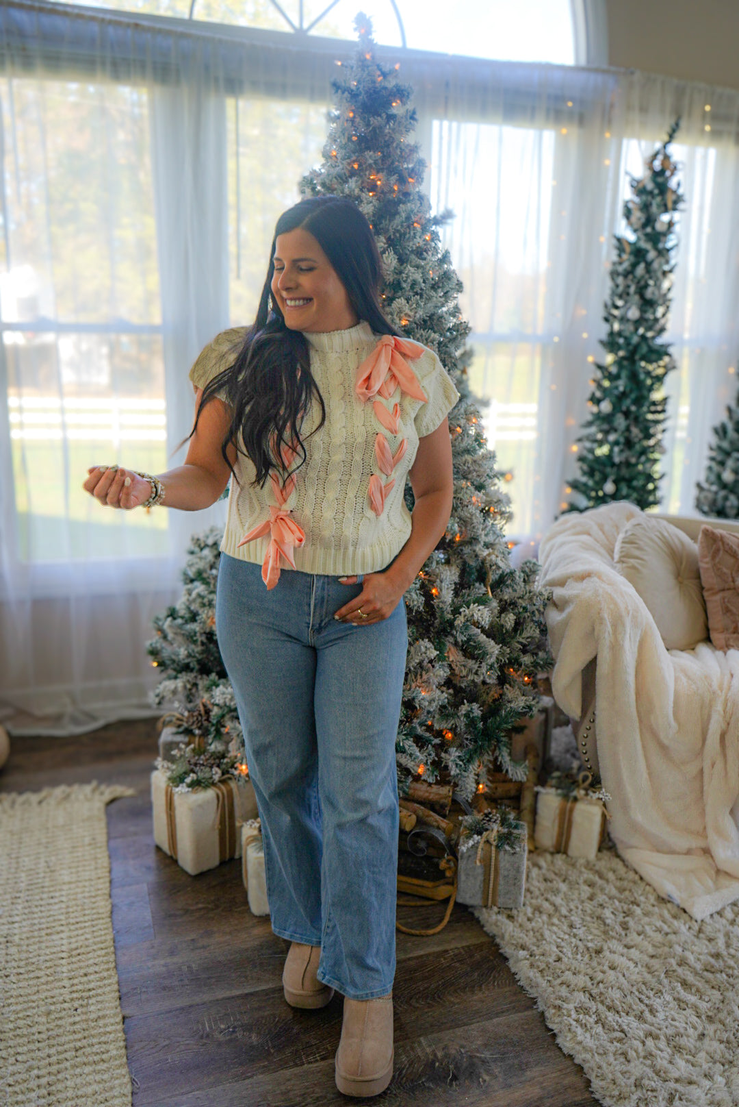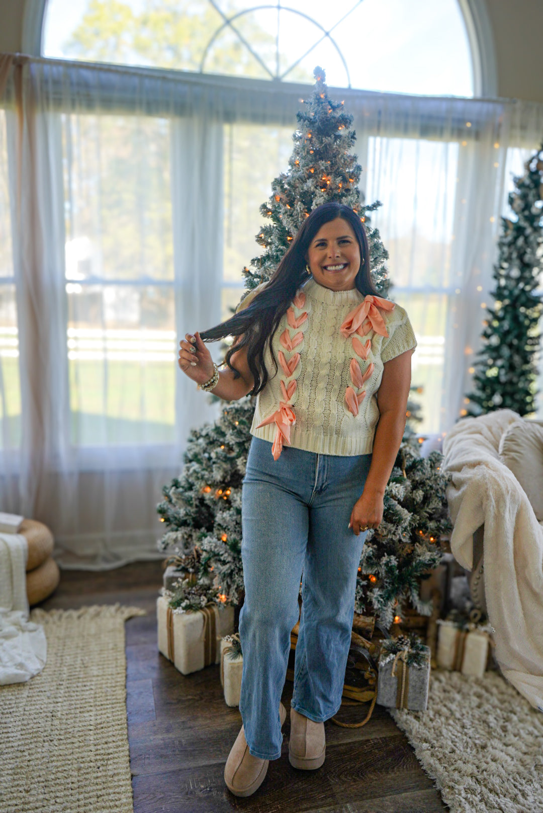 Satin Bow Cable Knit Sweater Vest - Off White/Pink 🩷1 med & 1 large