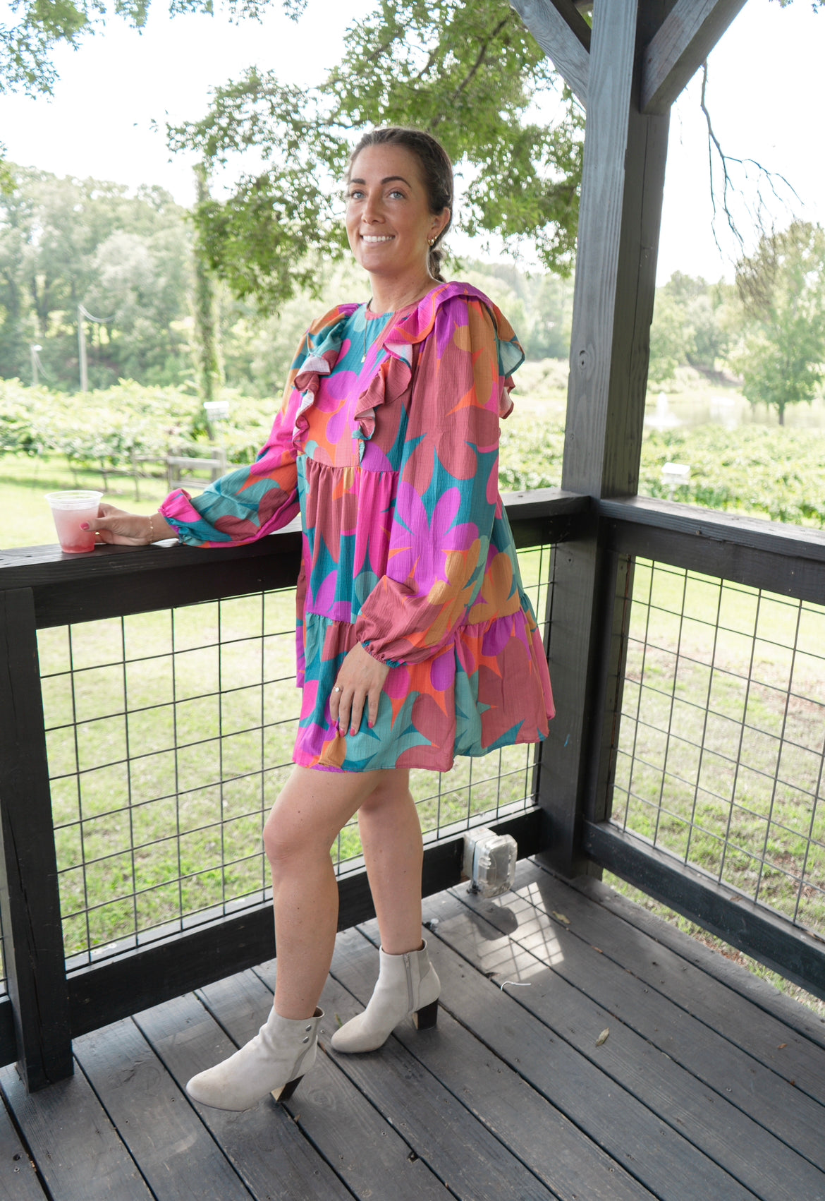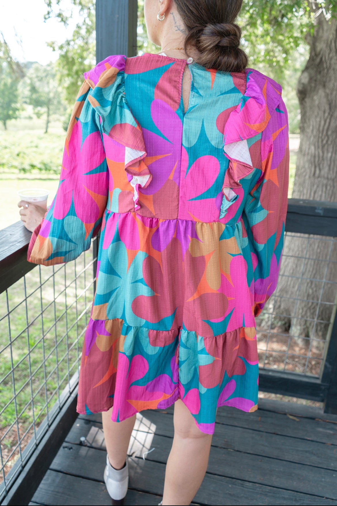 Say goodbye to boring dresses and add some floral sass to your wardrobe with this Maple Petal Print Mini Dress! It features a bold floral print, tiered ruffles, long balloon sleeves, and a loose fit for all-day comfort. With this dress, you'll feel as pretty as a petal!