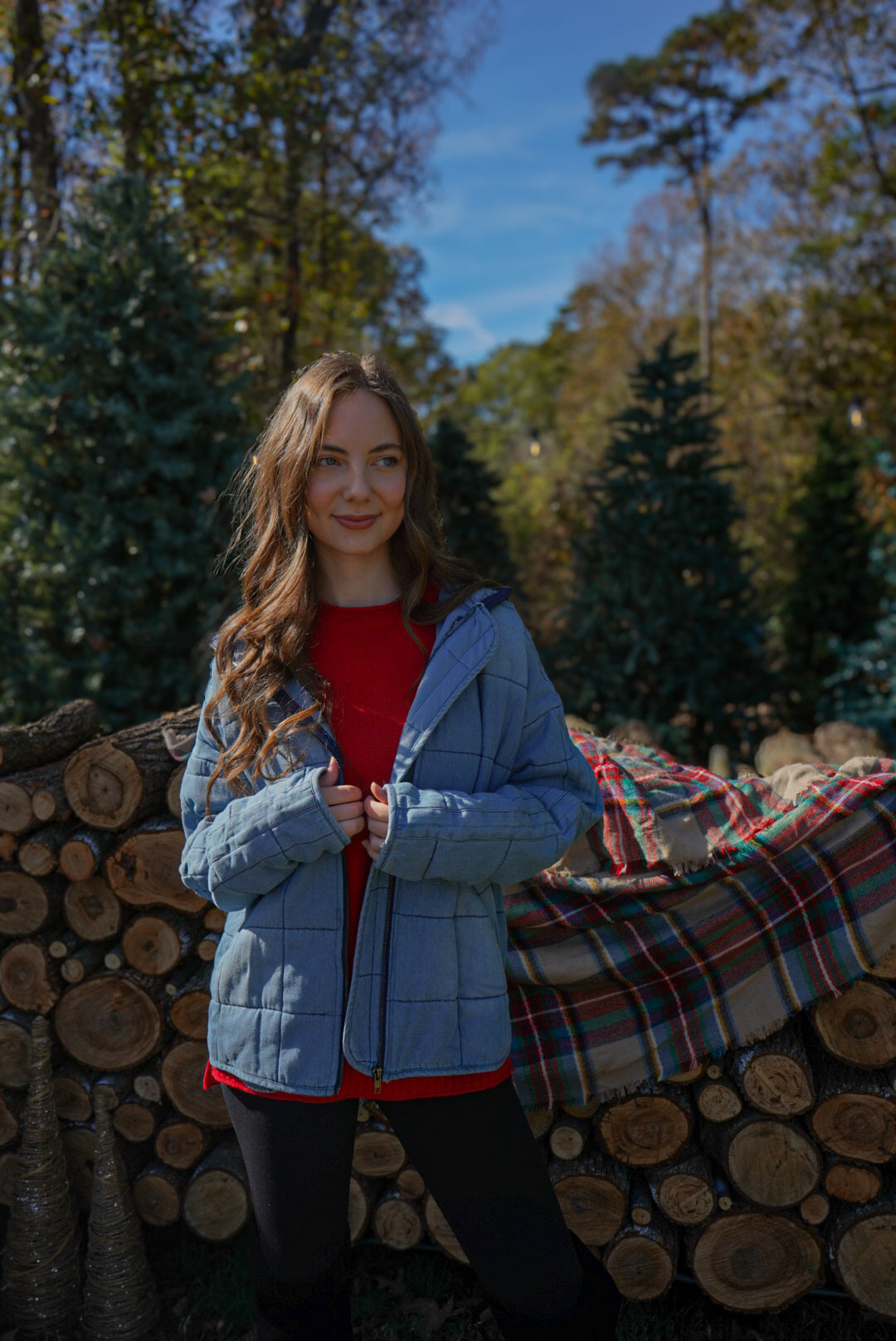 Make a style statement with the Thanks For The Memories Jacket! This washed denim quilted jacket has a cool mineral wash finish that adds bold edginess to any look. Made by premium denim, this collared jacket features front pockets that are perfect for keeping your essentials within reach. Pair it with your favorite outfits for a look that’s as fashionable as it is timeless. Get yours now and be ready to make some unforgettable style memories!