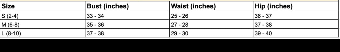 Size Rec: 0-2 XS, 2-4S, 6-8M, 8-10L