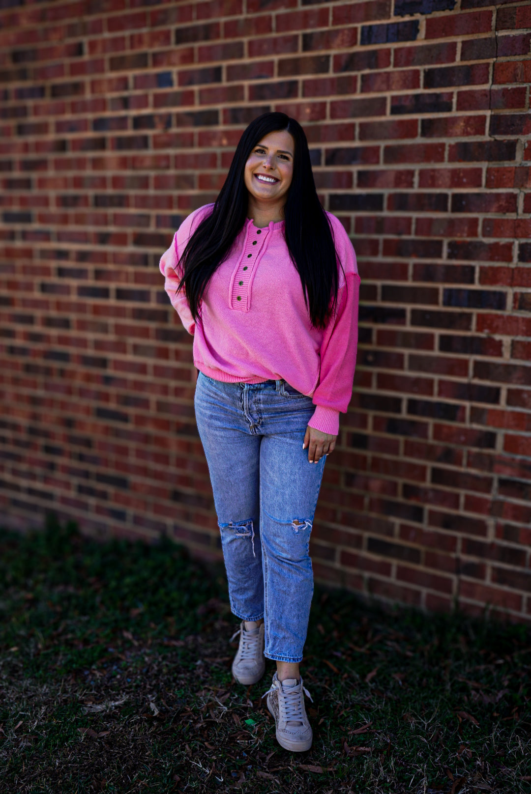Elevate your wardrobe with our Wrapped In Love Colorblock Sweater! Designed with multiple shades of pink, this ultra-chic and oversized sweater adds a touch of girly charm to any outfit. Dress it down with leggings or dress it up with jeans and a front tuck for a stylish and versatile look.